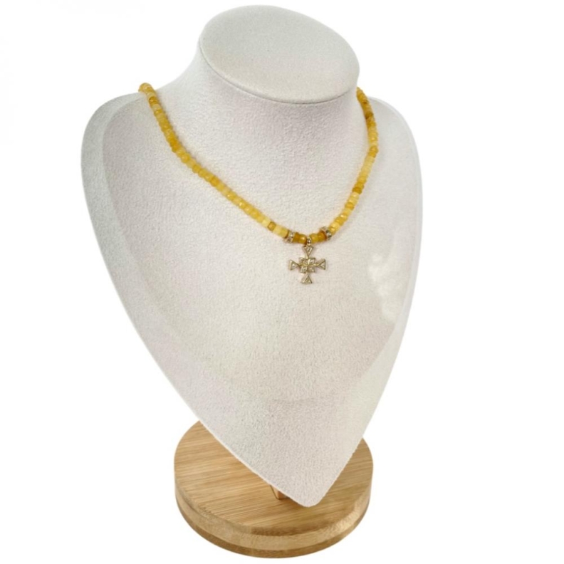 Choker de Jades amarelas com cruz de zircônias em ouroConfira opiniões e avaliações de clientes!