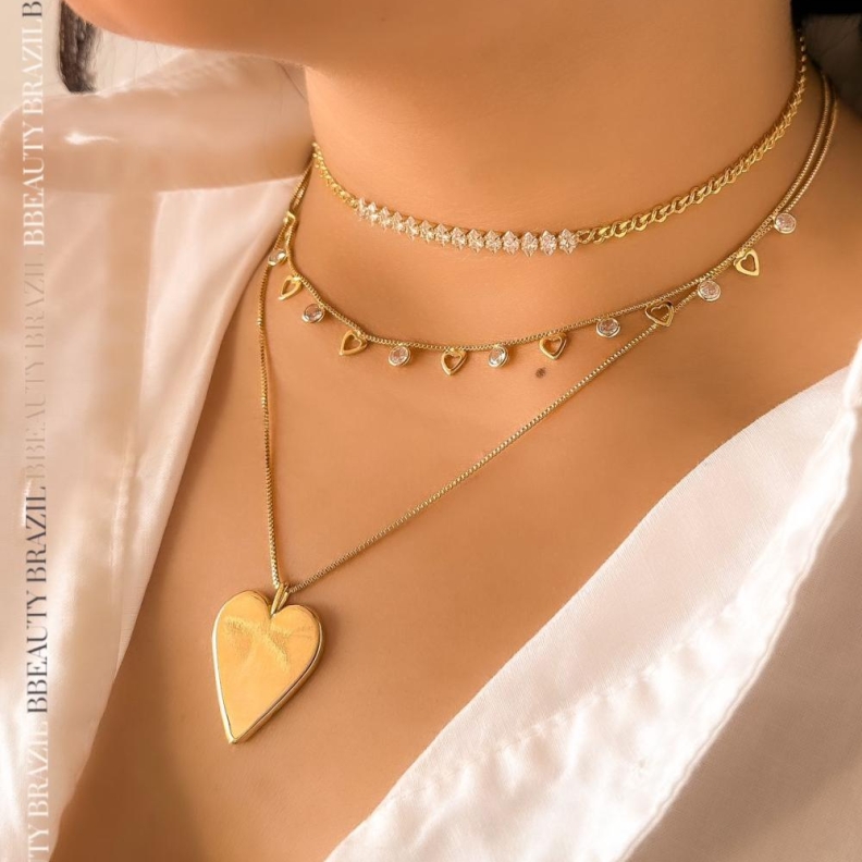 Choker Navetes Cristais, em ouroConfira opiniões e avaliações de clientes!