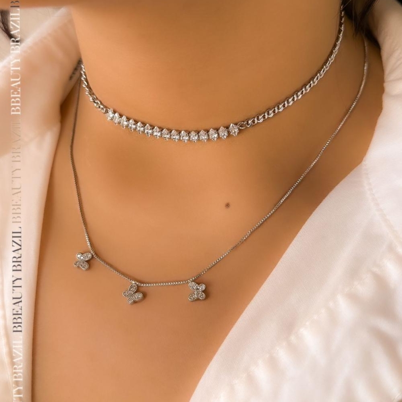 Choker Navetes Cristais, em ródioConfira opiniões e avaliações de clientes!