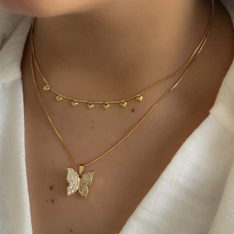 Colar Borboleta M cravejada em OuroConfira opiniões e avaliações de clientes!