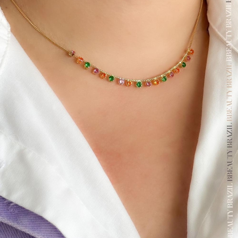 Colar Cristais Laranja espaçados em ouroConfira opiniões e avaliações de clientes!