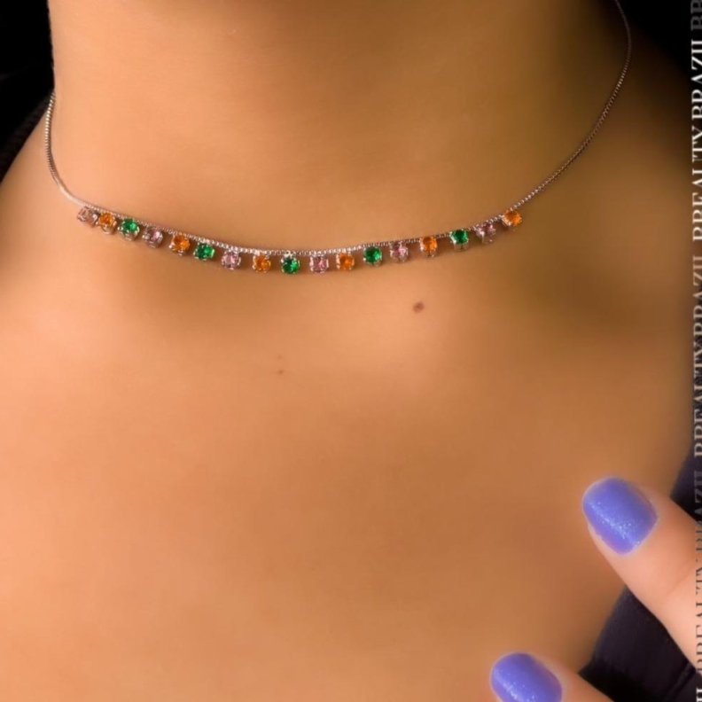 Colar Cristais Laranja espaçados em RodioConfira opiniões e avaliações de clientes!