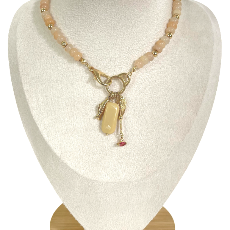 Colar cristais nude, patuá peixe e pedrasConfira opiniões e avaliações de clientes!