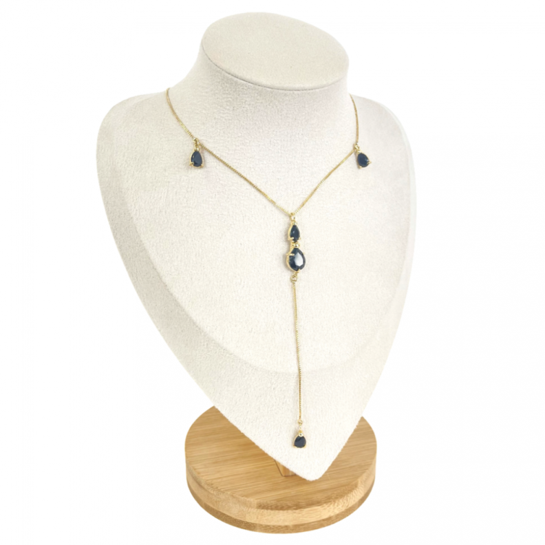 Colar dourado, cinco gotas negras, modelo gravataConfira opiniões e avaliações de clientes!
