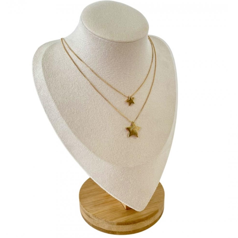 Colar Duplo Estrelas em ouroConfira opiniões e avaliações de clientes!