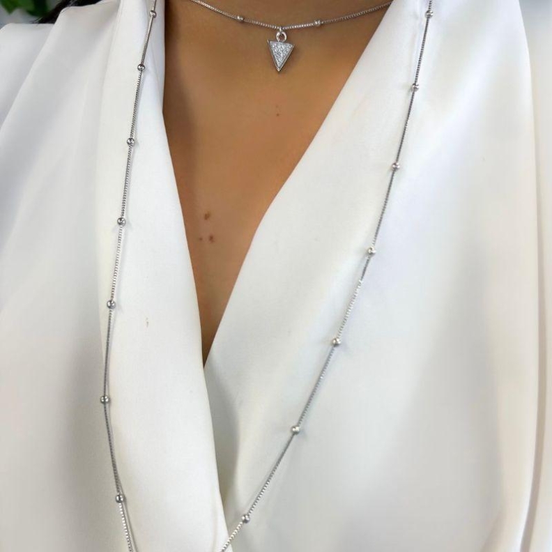 Colar Duplo Triangulos em RodioConfira opiniões e avaliações de clientes!