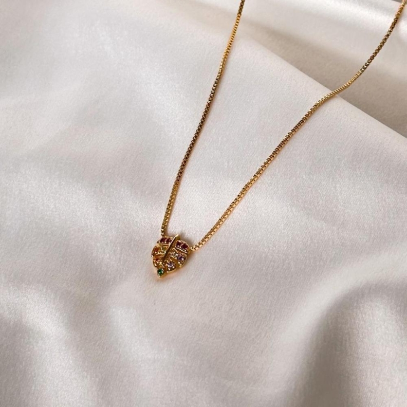 Colar Folha de Adão Cravejada Colorida em ouroConfira opiniões e avaliações de clientes!