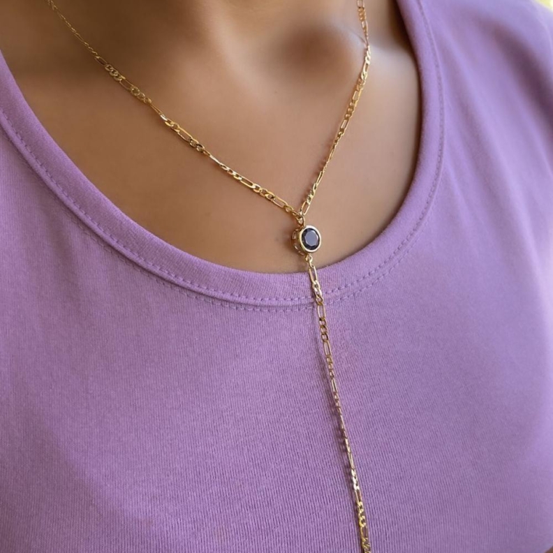 Colar Gravata Cristal Lilás Corrente Via Brust em ouroConfira opiniões e avaliações de clientes!