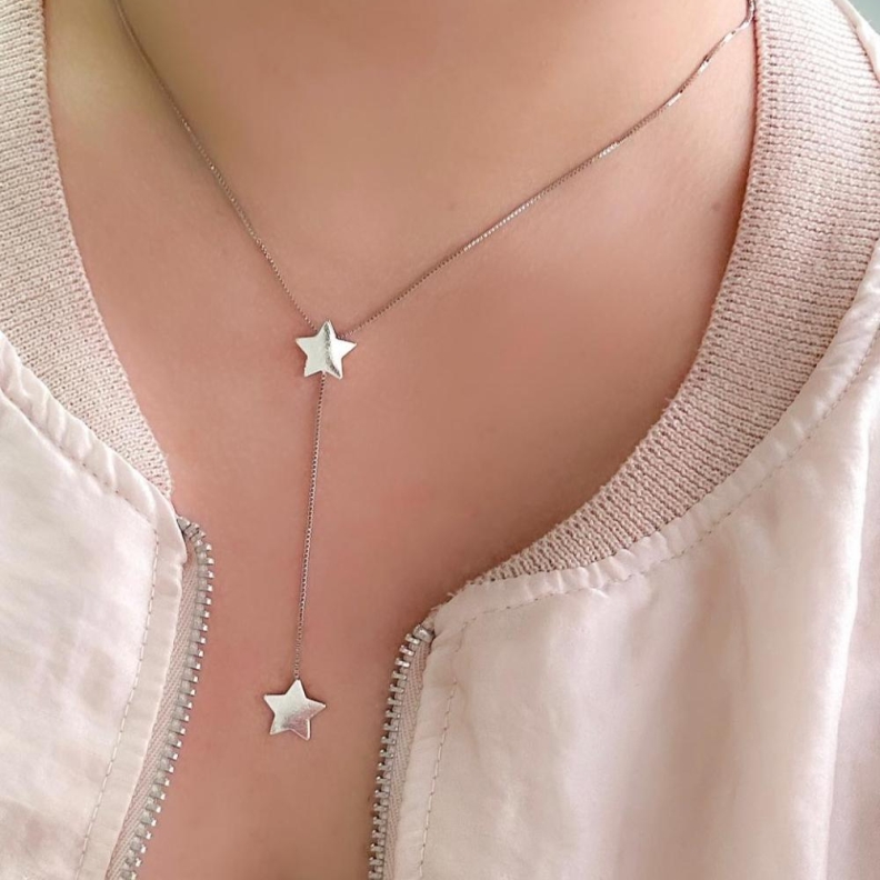 Colar Gravata Duas Estrelas em Ródio BrancoConfira opiniões e avaliações de clientes!