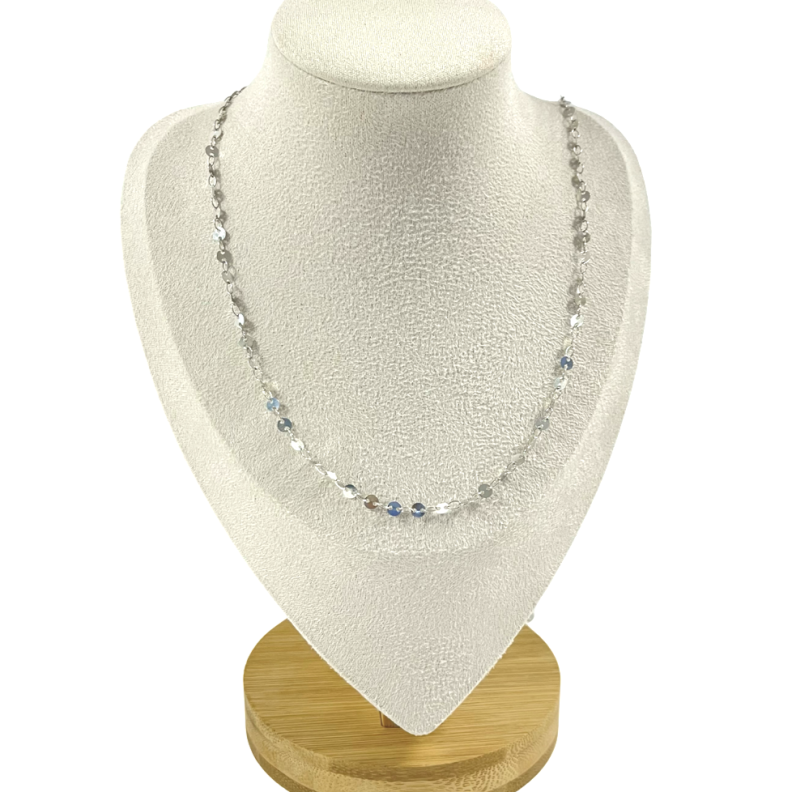 Colar longo chapinhas lisas em Ródio BrancoConfira opiniões e avaliações de clientes!