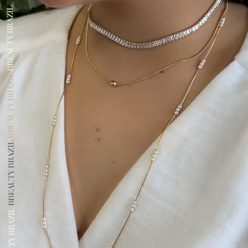 Colar Longo com Mini perólas, em ouroConfira opiniões e avaliações de clientes!