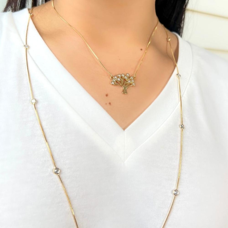 Colar Longo Cristais Tiffany em OuroConfira opiniões e avaliações de clientes!