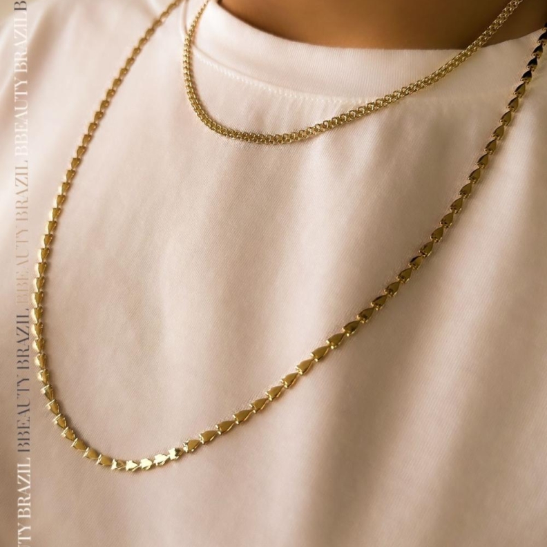 Colar Longo Elos Triangulares em ouroConfira opiniões e avaliações de clientes!