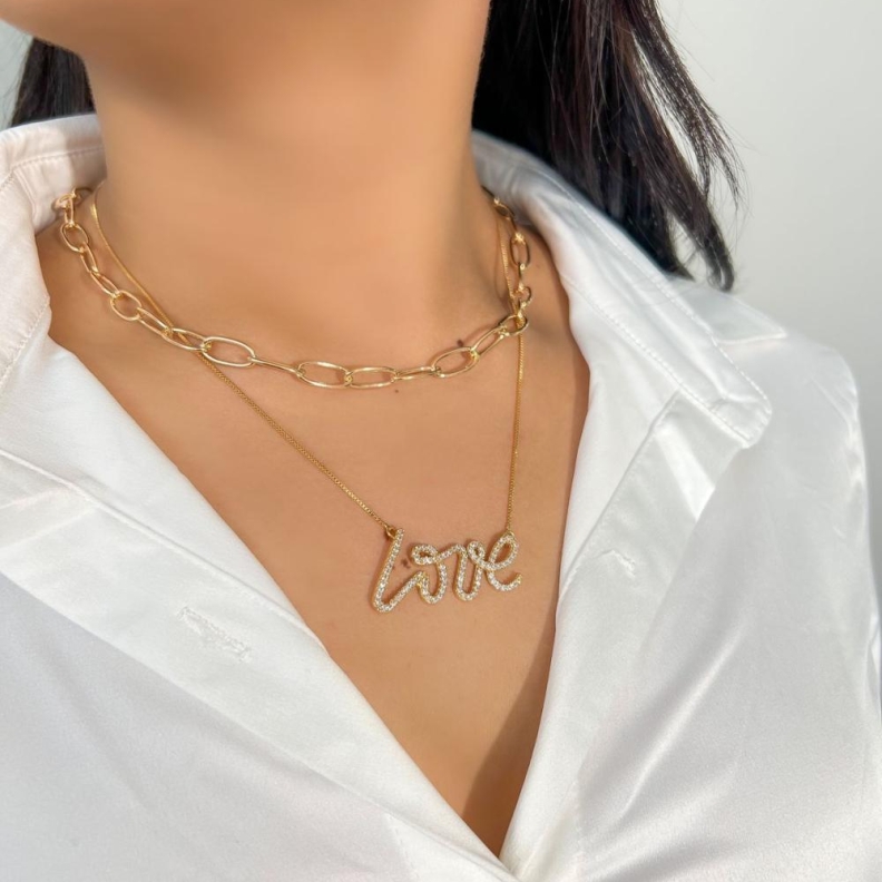 Colar LOVE cursivo cravejadoConfira opiniões e avaliações de clientes!