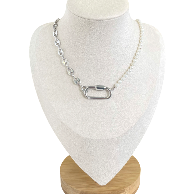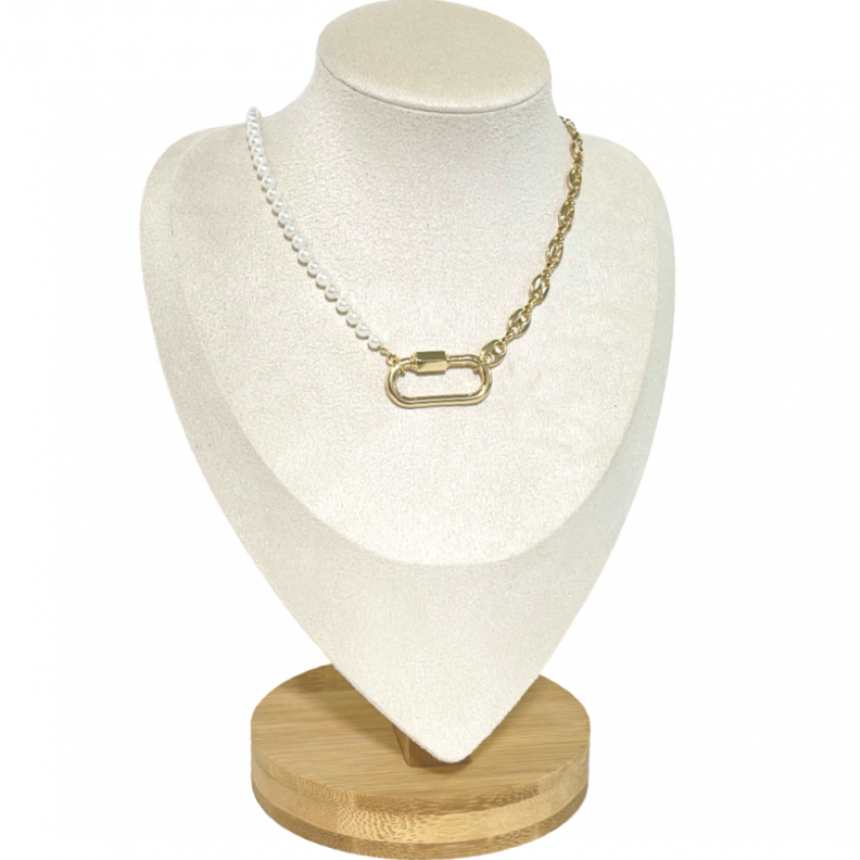 Colar metade pérolas/elos Inspiração elos Gucci com mosquetãoConfira opiniões e avaliações de clientes!