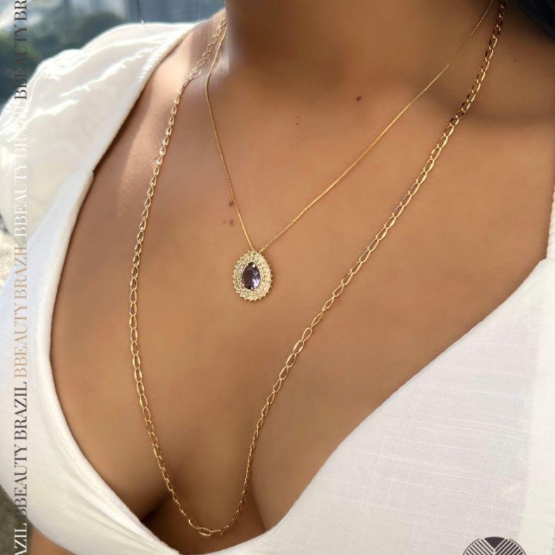 Colar pedra lilás, em ouroConfira opiniões e avaliações de clientes!