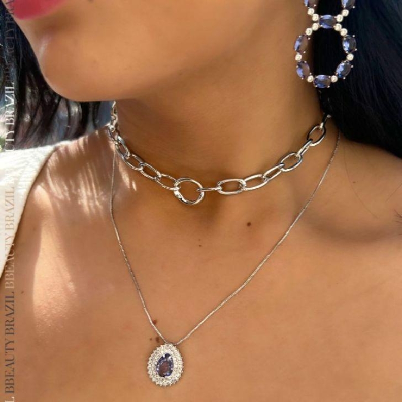 Colar pedra lilás, em rodio brancoConfira opiniões e avaliações de clientes!