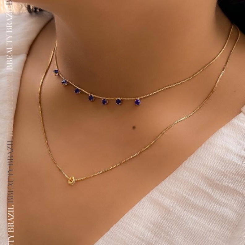 Colar Rivieiras espaçadas azuis em ouroConfira opiniões e avaliações de clientes!