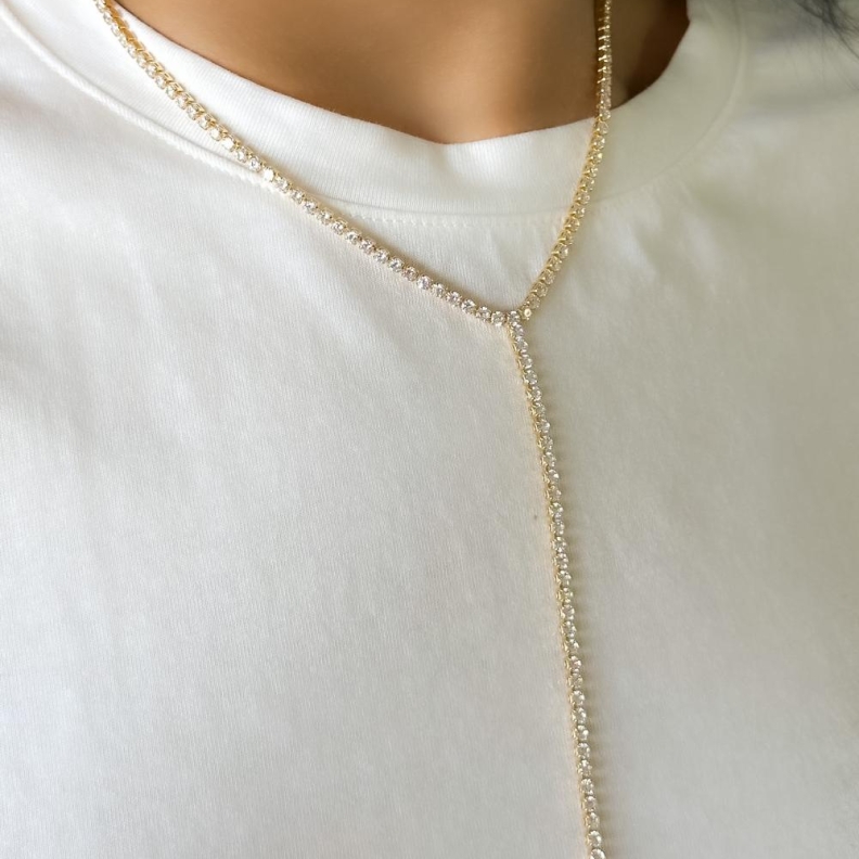 Colar Riviera com pedras cristais, em ouro.Confira opiniões e avaliações de clientes!