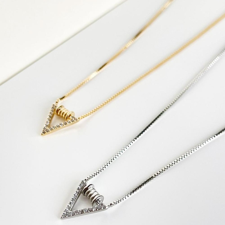 Colar Triângulo Cravejado, em Ródio BrancoConfira opiniões e avaliações de clientes!
