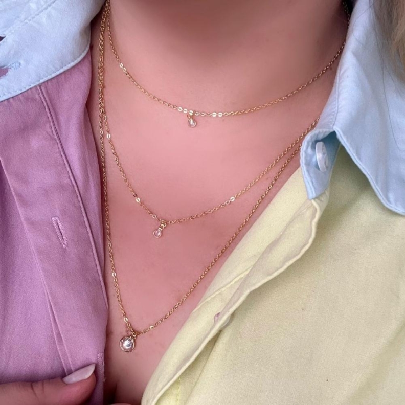 Colar triplo três zirconias, em ouroConfira opiniões e avaliações de clientes!