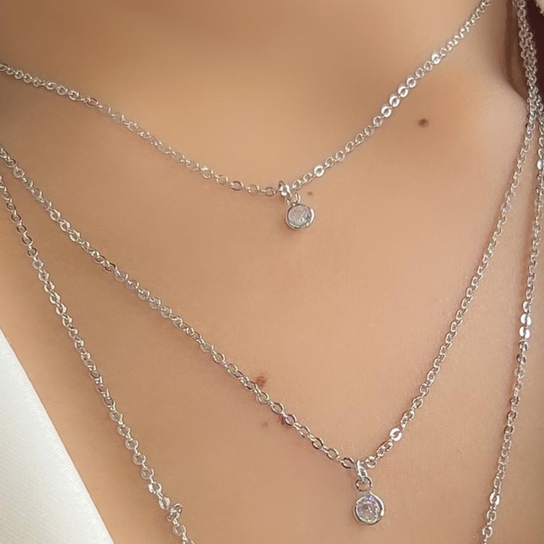 Colar triplo três zirconias, em rodio brancoConfira opiniões e avaliações de clientes!