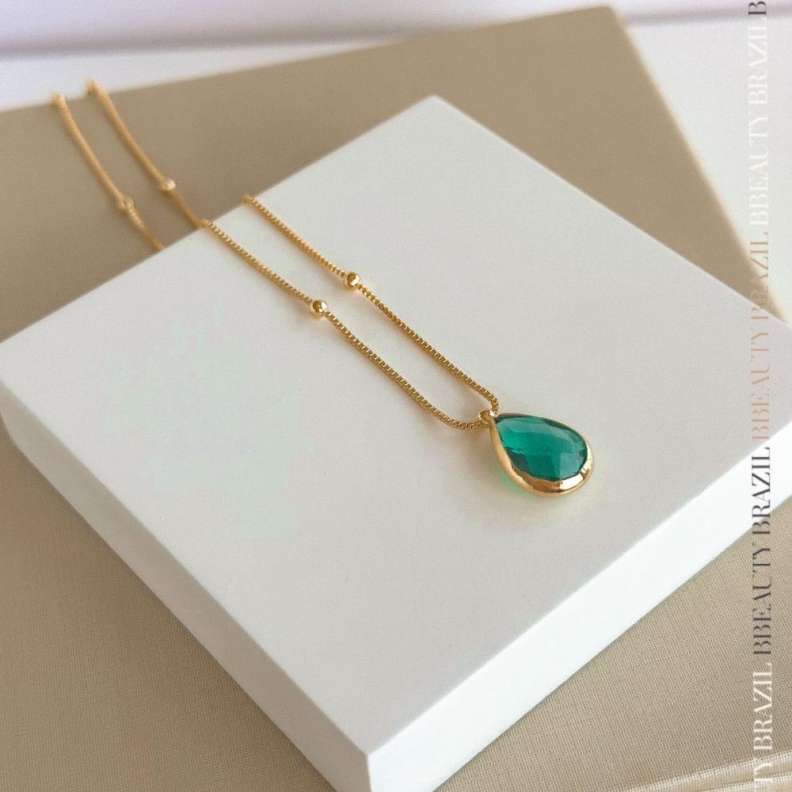 Colar uma gota esmeralda verde em ouroConfira opiniões e avaliações de clientes!