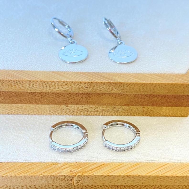 Dupla de Brincos Argola olho com zircônias redondasConfira opiniões e avaliações de clientes!