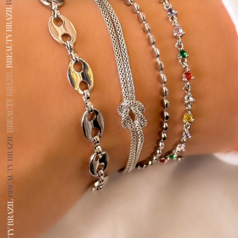 Pulseira Bolinhas achatadas, em ródioConfira opiniões e avaliações de clientes!