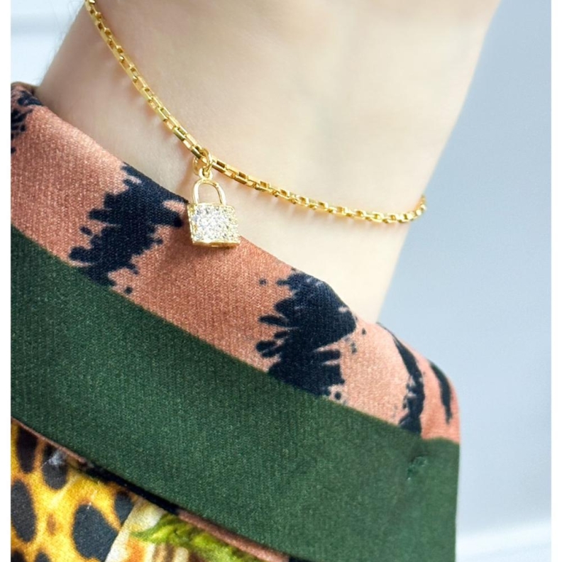 Pulseira com Cadeado Cravejado, em OuroConfira opiniões e avaliações de clientes!