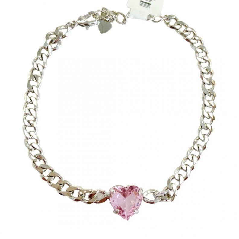 Pulseira corrente coração cristal rosaConfira opiniões e avaliações de clientes!