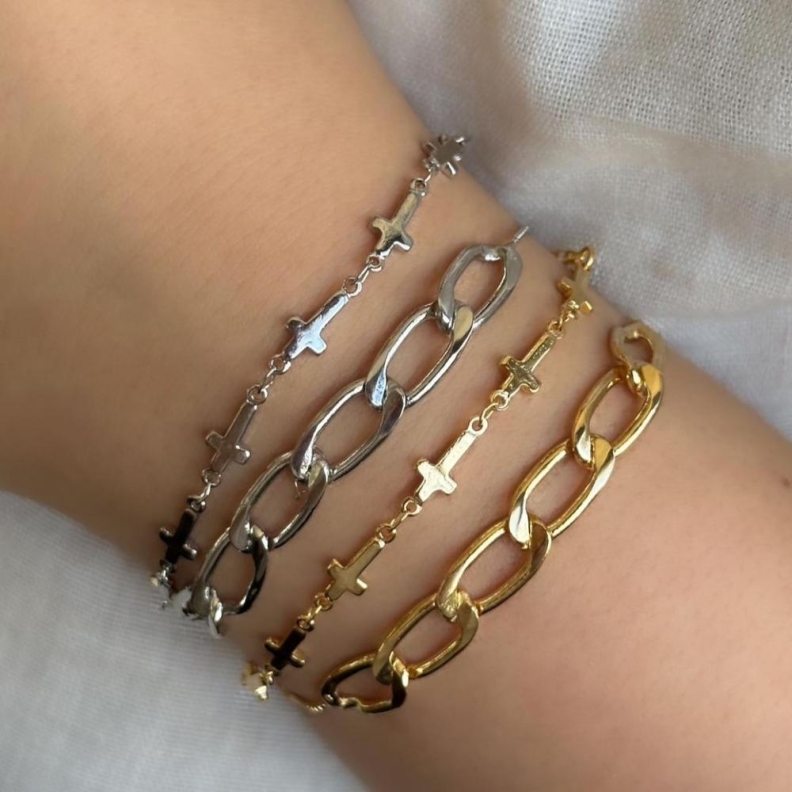 Pulseira Cruz ligadas em ouroConfira opiniões e avaliações de clientes!