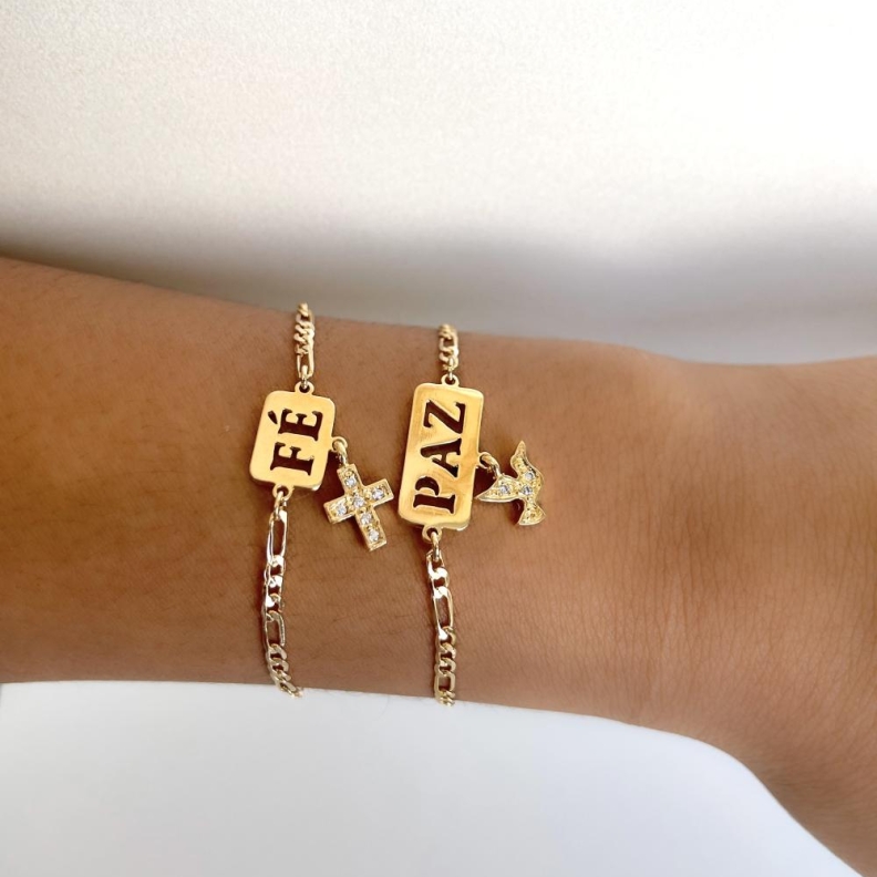 Pulseira Fé com Cruz cravejada em OuroConfira opiniões e avaliações de clientes!