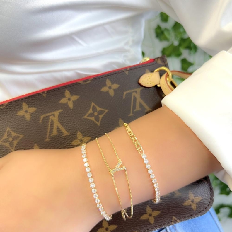 Pulseira Letrinha Cravejada Via Dupla, em OuroConfira opiniões e avaliações de clientes!