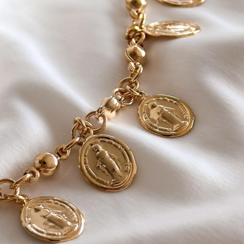 Pulseira medalhas Virgem Maria, em ouroConfira opiniões e avaliações de clientes!