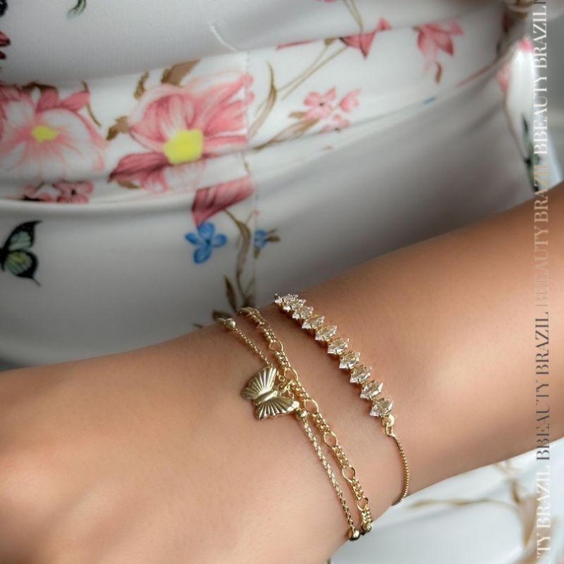 Pulseira Regulável dez cristais em ouroConfira opiniões e avaliações de clientes!