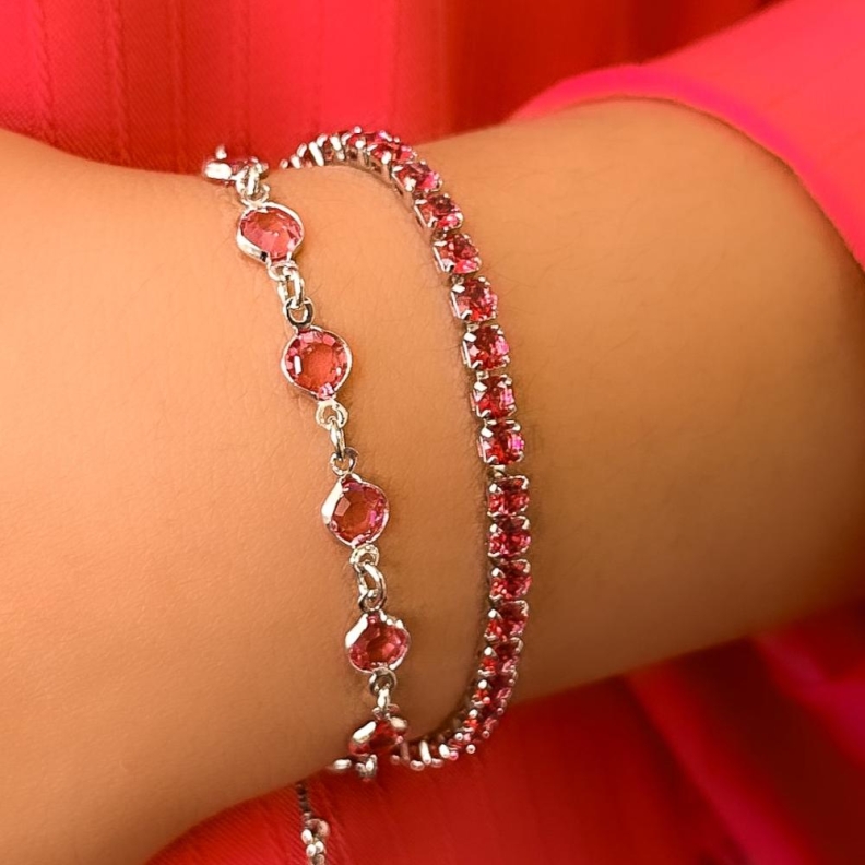 Pulseira regulável Rivieras Pink, em ródio.Confira opiniões e avaliações de clientes!