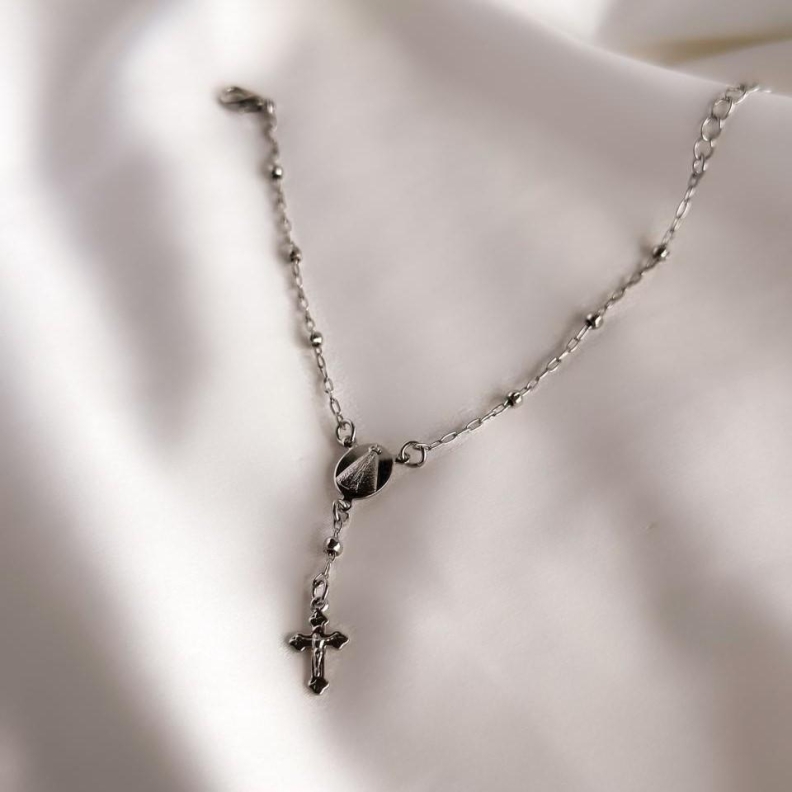 Pulseira Terço Nossa Sra. Aparecida, em ródio.Confira opiniões e avaliações de clientes!