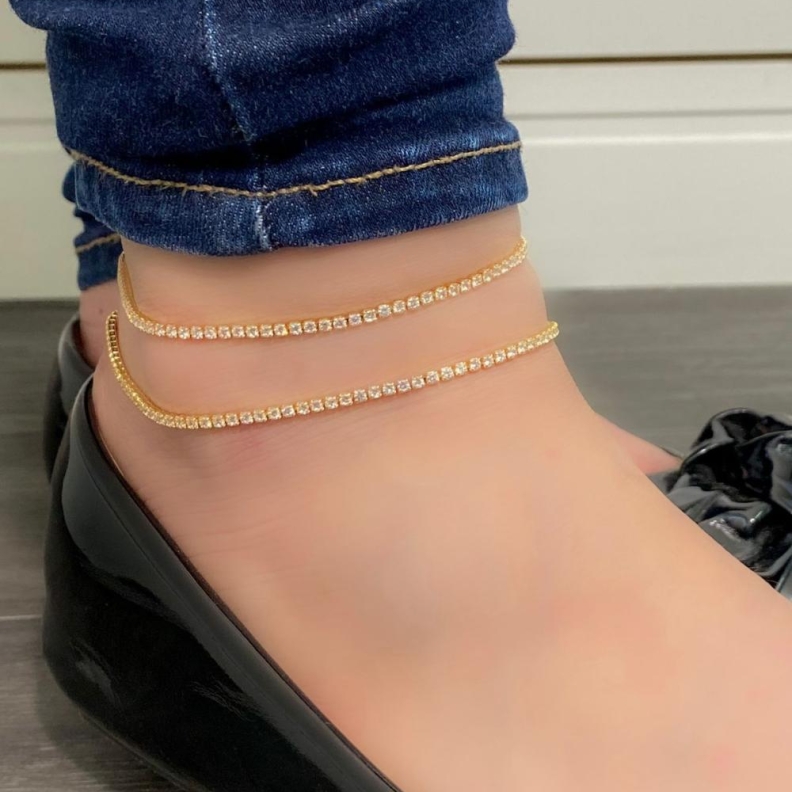 Tornozeleira com Cristais em Quadradinhos, em OuroConfira opiniões e avaliações de clientes!