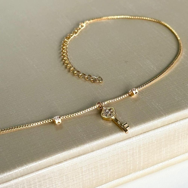 Tornozeleiras com chave cravejadas em ouroConfira opiniões e avaliações de clientes!