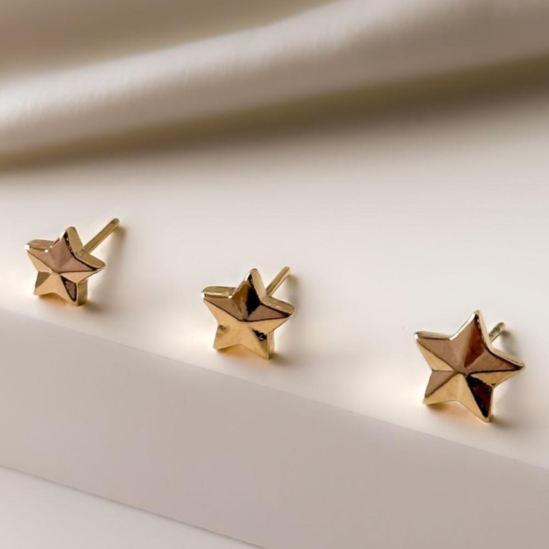 Trio de Brincos Estrelinhas lisas, em ouro.Confira opiniões e avaliações de clientes!